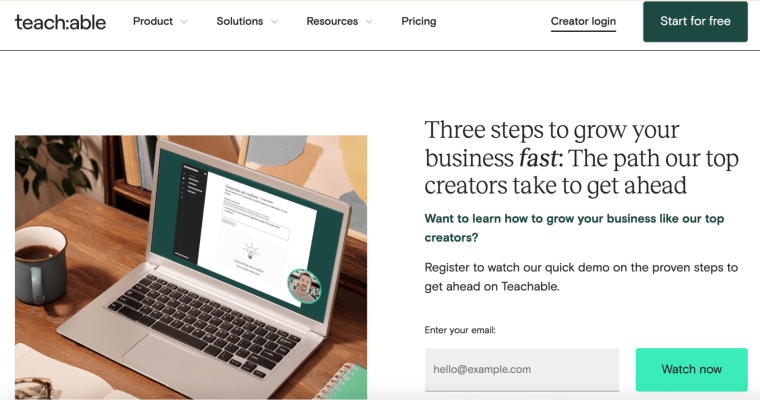 In the lead magnet idea above, teach:able encourages sign-ups by offering a hands-on experience with their product and service. As with the best lead magnet examples, the call to action and sign-up form are quick and easy to find.